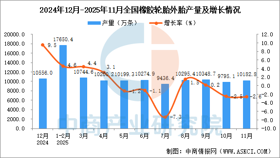 - 2025年11月全国橡胶轮胎外胎产量数据统计分析