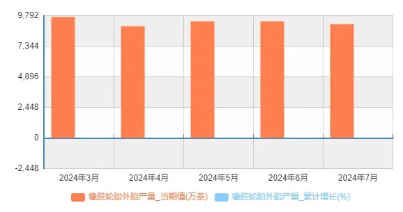 - 2024年7月中国橡胶轮胎外胎产量为9108万条,同比增加7.6%,较6月份减...