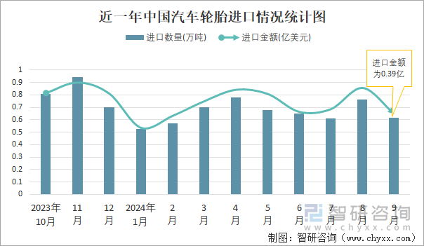 - 2024年1-9月中国汽车轮胎进出口数量分别为572万吨和59478万吨