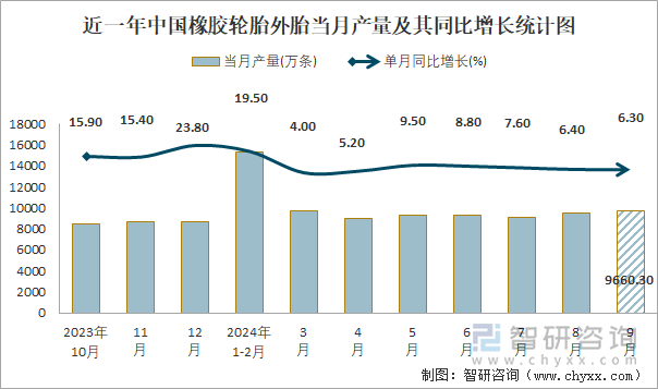 - 2024年1-9月中国橡胶轮胎外胎产量为833546万条累计增长91%