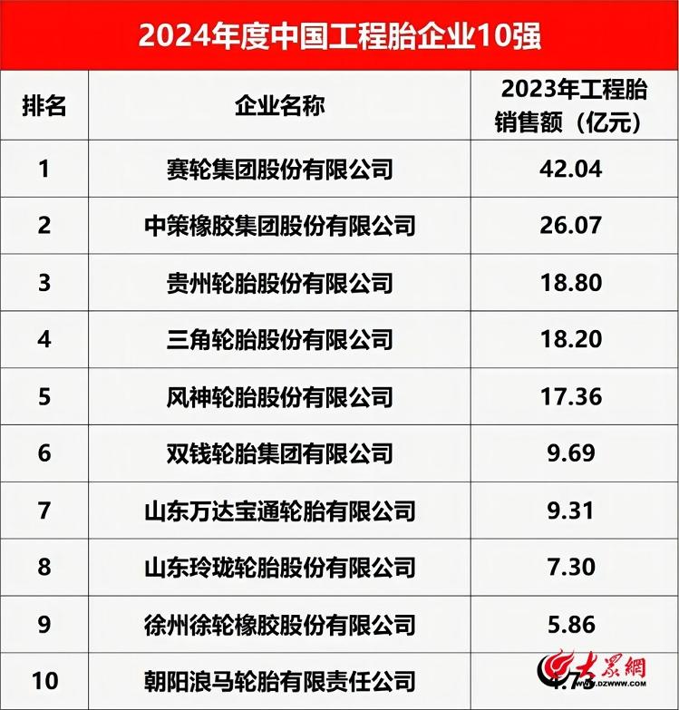 - 青岛西海岸新区赛轮集团荣登“2024年度中国工程胎企业10强”榜首