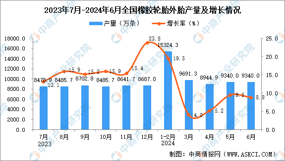 - 2024年6月全国橡胶轮胎外胎产量数据统计分析
