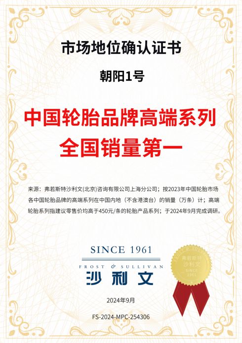 - 朝阳1号问鼎高端轮胎销冠轮胎行业掀起国潮热
