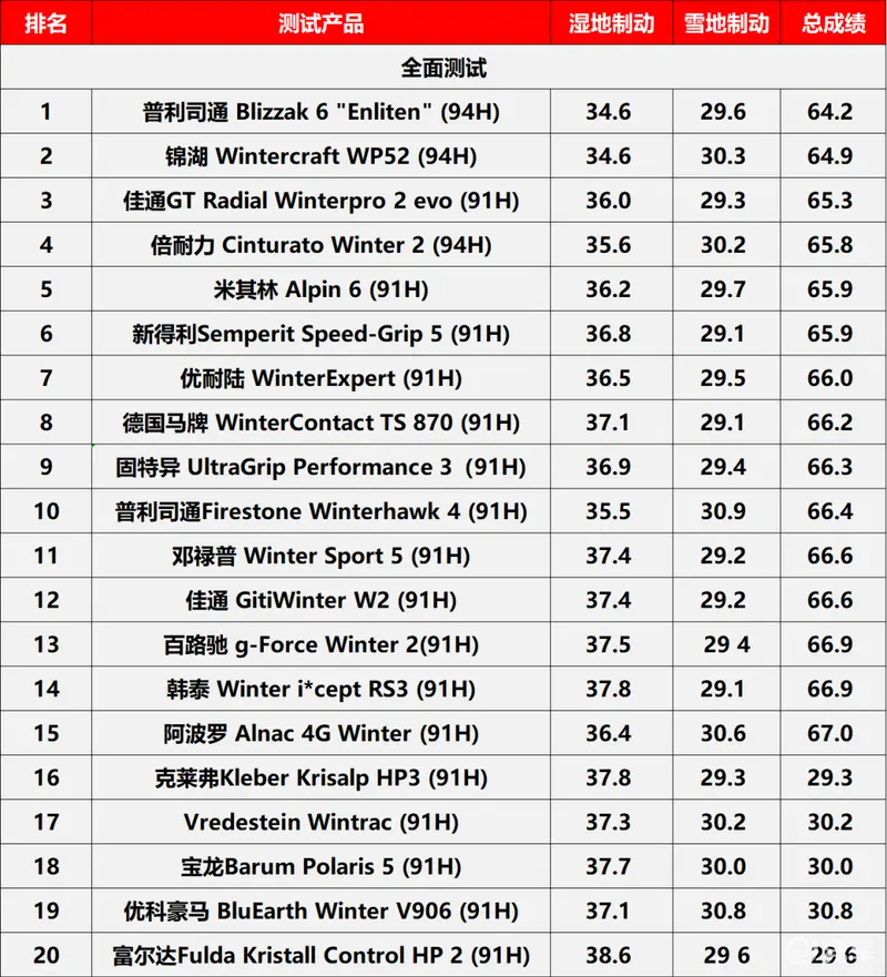 - 最强冬季胎性能(54款)