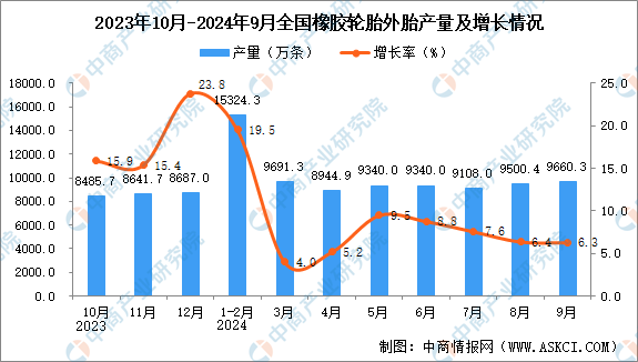 - 中商情报网讯:据中商产业研究院数据库,2024年9月全国橡胶轮胎外胎当月产量与...