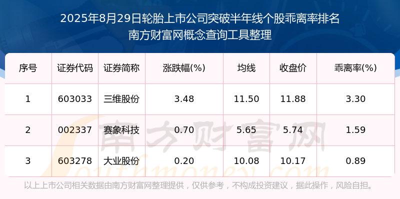 - 2025年8月29日轮胎上市公司收盘突破半年线个股一览
